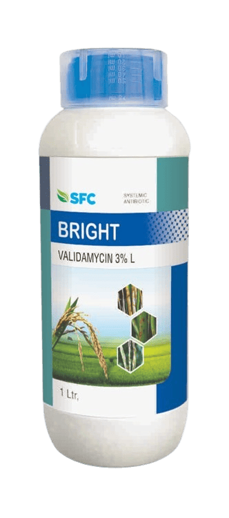 SFC Bright, which contains the active ingredient Validamycin 3% L. This product is classified as a systemic antibiotic fungicide used in agriculture to control specific fungal diseases.