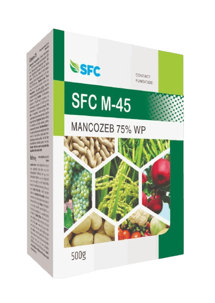 SFC M-45 is a broad-spectrum, contact fungicide with a protective action, widely recognized for its efficacy against a wide range of fungal diseases in various crops. Its active ingredient is Mancozeb 75% WP (Wettable Powder formulation), and it is popularly known as the "King of Fungicides" due to its versatility and reliable performance.