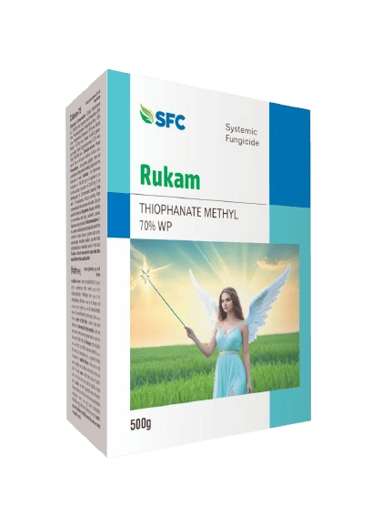 SFC Rukam is a broad-spectrum systemic fungicide that provides both preventive and curative action against a wide range of fungal diseases in various agricultural crops. Its active ingredient is Thiophanate Methyl 70% WP, and it is well known for its versatility in application methods and promoting plant health.